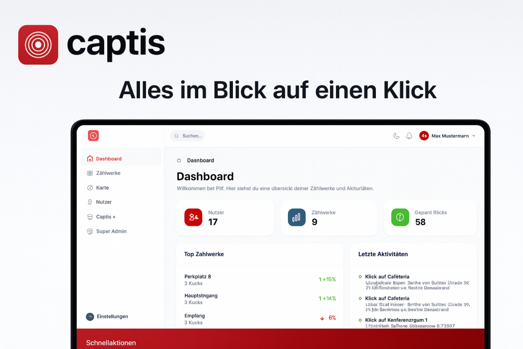 Erleben Sie mit unserer Demo-Version live, wie Captis Ihre Dokumentation, Nachverfolgung und Optimierung von Wartungs- und Instandhaltungsaufgaben vereinfacht. Ohne Risiko, direkt einsetzbar – so gewinnen Sie einen frühen Eindruck davon, wie Ihre Arbeitsabläufe effizienter, transparenter und moderner werden.